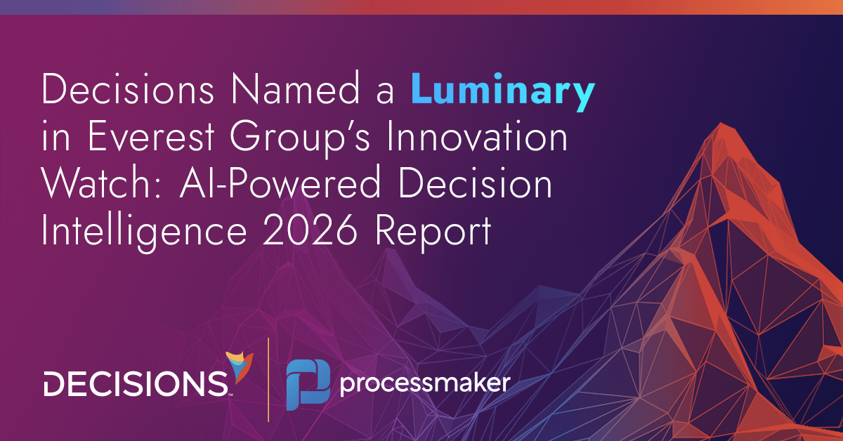 To explore why Decisions was recognized as a Luminary in Everest Group’s AI-powered Decision Intelligence 2026 report, connect with a Decisions platform expert.
